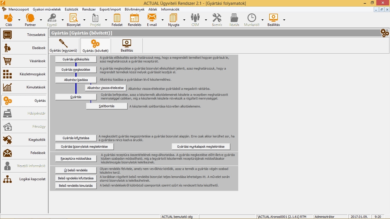 A(z) Gyártás további felhasználókkal és modulokkal egyaránt bővíthető.