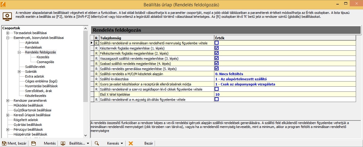 • fix vagy egyedi (rendelésenként változtatható) receptúra kezelés