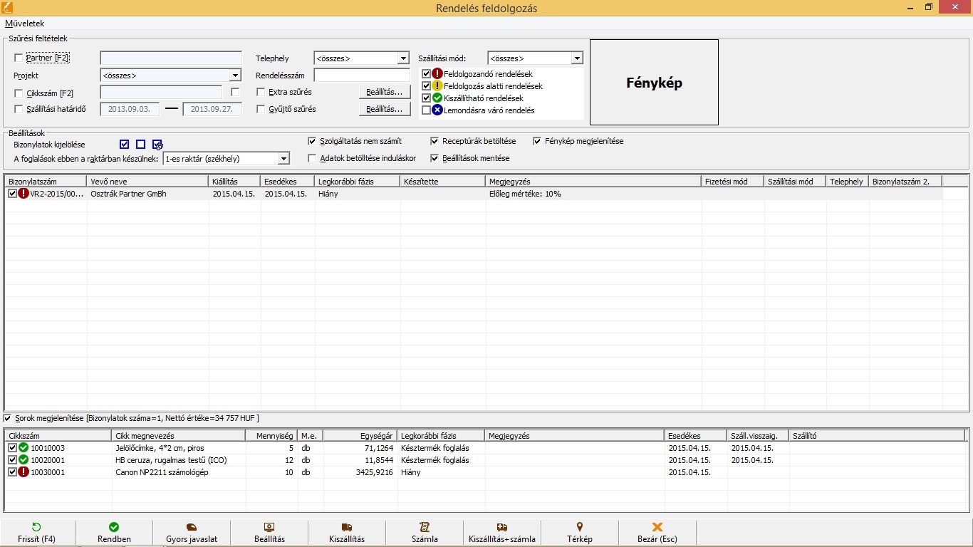 • automatikus javaslat készítés a rendelés feldolgozásakor