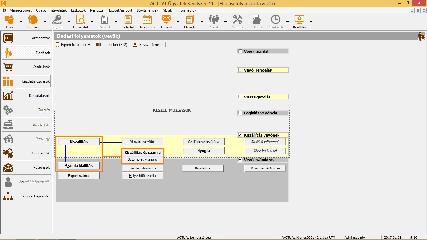 • vevők részére átadott áruk (kiszállítások) és visszáruk kezelése