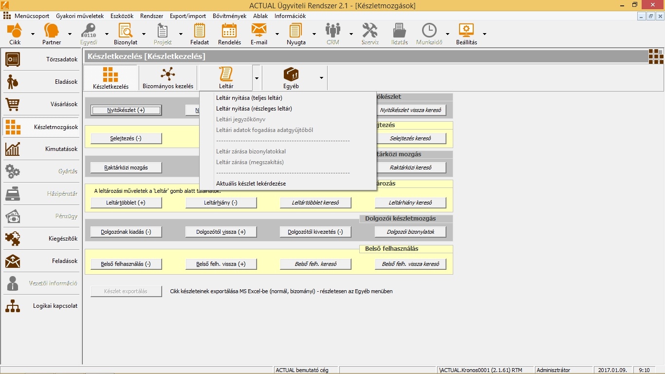 • részleges vagy teljeskörű leltár indítása