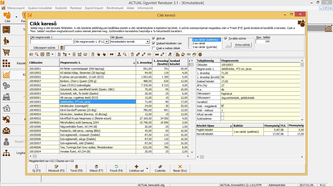 • Cikk (termék) adatok nyilvántartása