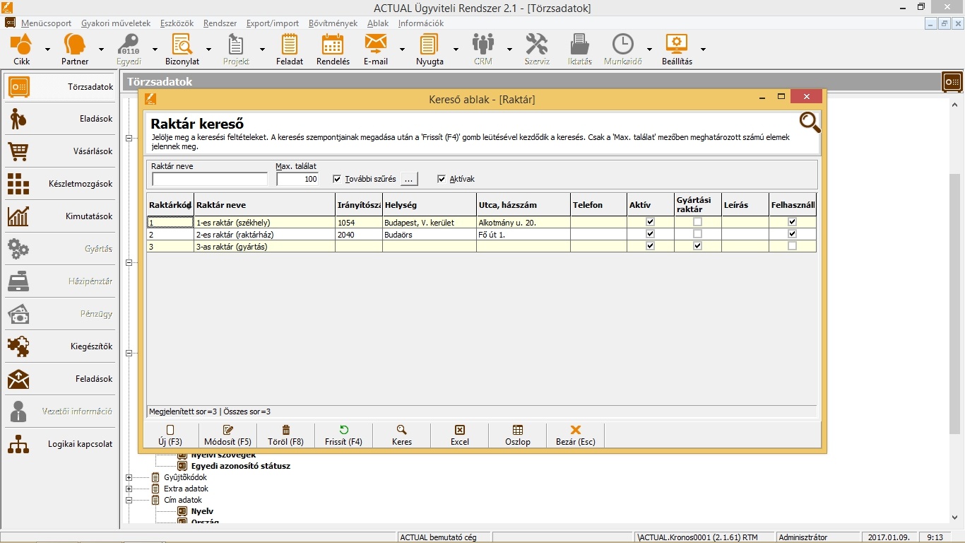 • korlátlan számú raktár nyilvántartása