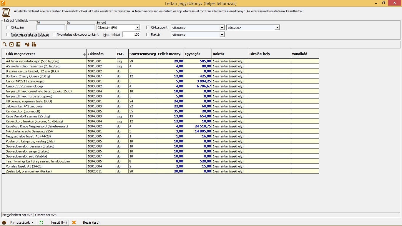 • leltári jegyzőkönyv kezelése akár a meglévő készletek beolvasásával