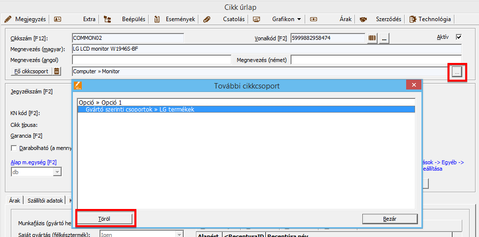 - A már felhasznált adattörlő kódok megtekinthetőek itt: Törzsadatok - Cikk - Felhasznált adattörlő kódok